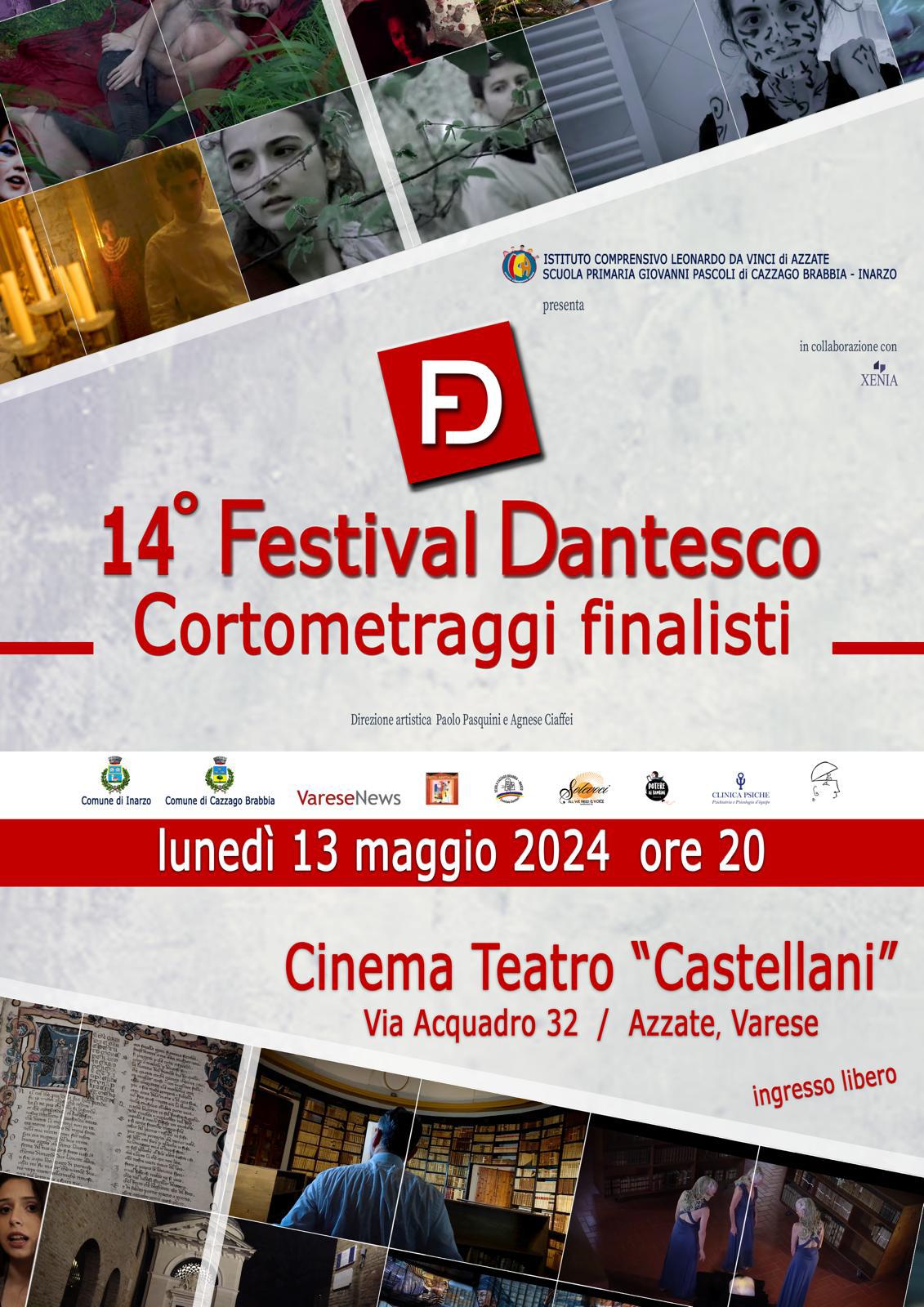 Per la sua 14^ edizione il Festival dantesco torna ad Azzate lunedì 13 maggio alle ore 20 con la proiezione di tutti i corti finalisti al Cinema Teatro Castellani di via Acquadro 32, per una serata di cinema e poesia dedicata al Sommo poeta.