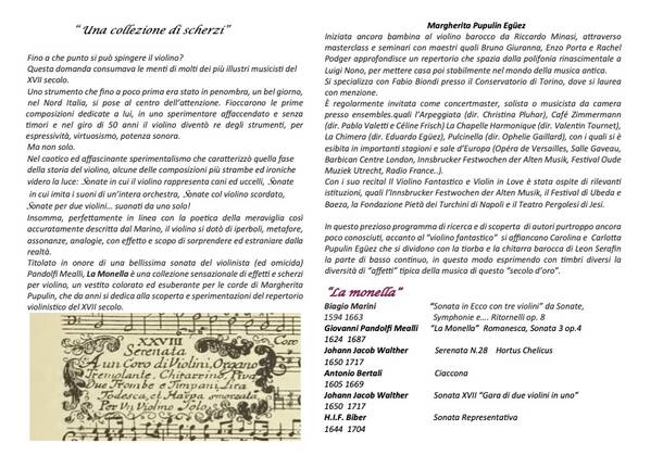 Protagonista del concerto di musica antica sarà l’Ensemble “la Monella“. Margherita Pupulin violino barocco, Carlotta Pupulin arpa tripla, Caterina Pupulin viola da gamba, Leon Serafin tiorba/ chitarra barocca