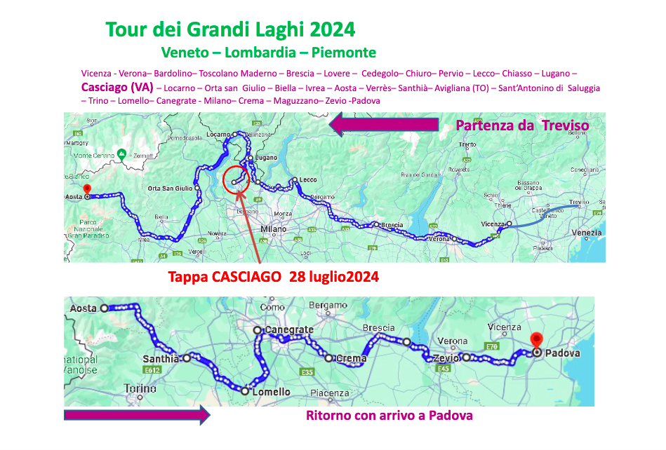 Tra le numerose tappe di questo affascinante viaggio, il 28 luglio il Tour Dantesco farà sosta a Casciago, in provincia di Varese. L’associazione Anni Verdi e l’Amministrazione Comunale sono orgogliose di ospitare questo evento ciclo-culturale presso la storica Villa Castelbarco, sede del comune in Largo De Gasperi. Alle ore 21:00, i presenti potranno assistere a una rappresentazione allegorica di un canto della Divina Commedia, recitato dal professor Battistella, mentre ammirano lo splendido panorama dei laghi e del Monte Rosa.
