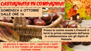 Domenica 6 ottobre dalle ore 16 la prima Castagnata della stagione a Gurone è nel giardino della scuola materna Leopolda Frascoli per un pomeriggio da condividere insieme in compagnia degli alpini di Malnate.