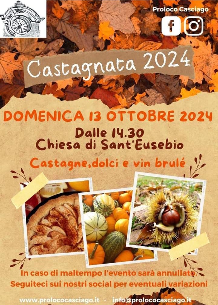 In caso di maltempo, la Castagnata sarà annullata, e gli aggiornamenti verranno comunicati sui canali social della Pro Loco di Casciago, per tenere tutti informati su eventuali variazioni.