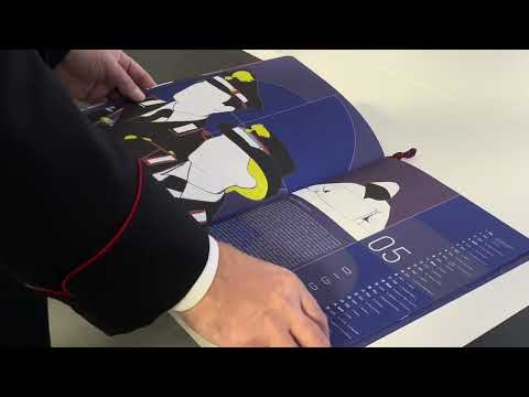I testi che accompagnano le 12 tavole descrivono un dialogo epistolare fra un Maresciallo Comandante di Stazione, vedovo, e suo figlio, studente alle prese con le sfide del quotidiano e con il dolore, condiviso con il padre, per la scomparsa della madre. Il Maresciallo utilizza come chiave di dialogo alcuni racconti del suo lavoro, parlando di alcuni episodi di servizio che toccano temi come il bullismo, le dipendenze, la salvaguardia dell’ambiente e del rispetto per l’altro, l’inclusività e la solitudine sociale. Riesce così a superare gli ostacoli e le difficoltà ricorrenti nel rapporto comunicativo fra adulti e ragazzi con un metodo tanto astuto quanto discreto: conoscendo l’abitudine del ragazzo di sfogliare album di foto che ritraggono anche la madre scomparsa, decide di inserire dei bigliettini al suo interno, chiedendogli di toglierli se letti e, quindi, graditi. In questo modo, Maurizio de Giovanni riesce a romanzare il rapporto fra nuove generazioni e legalità, con un linguaggio diretto ed empatico, riassumendo l’amore paterno, i valori e la fiducia nelle giovani generazioni in una sorta di testamento morale. Le tavole, invece, raffigurano, nell’inconfondibile stile pop di Marco Lodola, carabinieri delle varie articolazioni dell’Arma e figure giovanili, nella versione cartacea delle “sculture luminose” che lo hanno reso celebre nel mondo. Il calendario vuole valorizzare i giovani, bene inestimabile per tutti e investimento prezioso per il futuro del Paese, richiamando una delle principali attività preventive svolta dall’Arma a loro favore, gli incontri nelle scuole sulla “Cultura delle legalità”, che ambiscono a promuovere conoscenza della legge e cultura civica. Un’opportunità unica e privilegiata di cui far tesoro per sviluppare nelle giovani generazioni la sensibilità verso le tematiche sociali più avvertite, della legalità e dei temi ambientali, e accrescere la consapevolezza del proprio prezioso ruolo per la crescita sociale, economica e democratica del Paese. La tavola del mese di novembre, attraverso la rappresentazione di un militare per ciascuna Forza Armata, è dedicata alla “Difesa” e ai suoi valori. La scelta del mese coincide con la ricorrenza della “Giornata dell’Unità nazionale e delle Forze Armate”, che celebriamo il 4 novembre, quest’anno suggellata dalla cerimonia nella città di Venezia e dal “Villaggio della Difesa” allestito al Circo Massimo dal 1 al 4 novembre, in cui i cittadini potranno scoprire le nostre Forze Armate. La grande curiosità che suscita il Calendario Storico dell’Arma, oggi giunto a una tiratura di 1.200.000 copie e tradotto in otto lingue straniere (inglese, francese, spagnolo, tedesco, portoghese, giapponese, cinese e arabo) oltre che in sardo e friulano, è una chiara dimostrazione della stima e della gratitudine di cui gode l’Istituzione da parte della comunità. L’elevato significato dei suoi contenuti ne fanno un oggetto apprezzato, ambito e presente tanto nelle abitazioni e nei luoghi di lavoro quanto nelle scuole e nei luoghi di aggregazione sociale, quasi a testimonianza del fatto che “accanto ad ogni cittadino c’è un Carabiniere”. La pubblicazione del Calendario, giunta alla sua 92^ edizione, dopo l’interruzione post-bellica dal 1945 al 1949 venne ripresa regolarmente nel 1950 e da allora è stata puntuale interprete, con le sue tavole, delle vicende dell’Arma e, attraverso di essa, della Storia d’Italia.