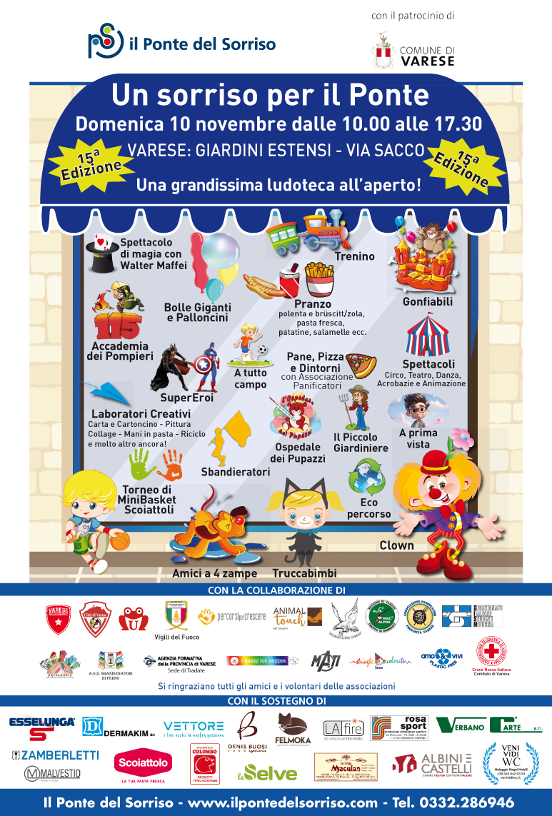 “Un sorriso per il Ponte“, è una grandissima ludoteca all’aperto organizzata da Il Ponte del Sorriso. Dopo essere stata rinviata due volte, si ripropone domenica 10 novembre.