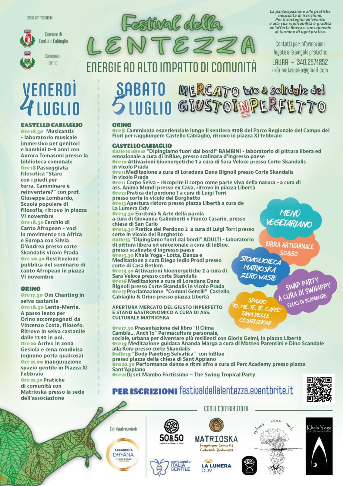 Il Festival della Lentezza è organizzato da un’ampia rete di realtà del territorio: Matrioska, La Lumera ODV, Accademia Dhyana, Cers Energia Solidale, con il patrocinio dei comuni di Castello Cabiaglio e Orino. Un’occasione per sperimentare un altro modo di stare insieme, basato sull’ascolto, il rispetto e la cura.