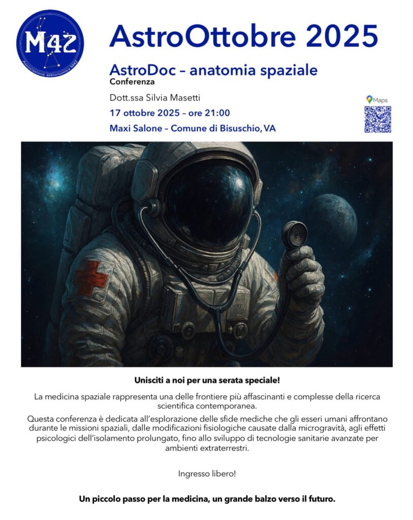 Appuntamento imperdibile a Bisuschio per tutti gli appassionati di scienza e medicina. Nell’ambito di AstroOttobre 2025, il Maxi Salone del Comune ospiterà, venerdì 17 ottobre 2025, alle ore 21:00, la conferenza dal titolo affascinante: “AstroDoc – anatomia spaziale”.