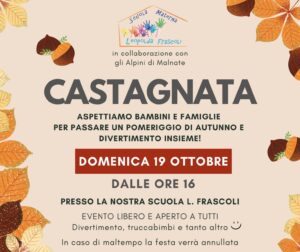Domenica 19 ottobre dalle ore 16 il giardino della scuola Frascoli apre alla comunità per una castagnata in collaborazione con gli Alpini di Malnate