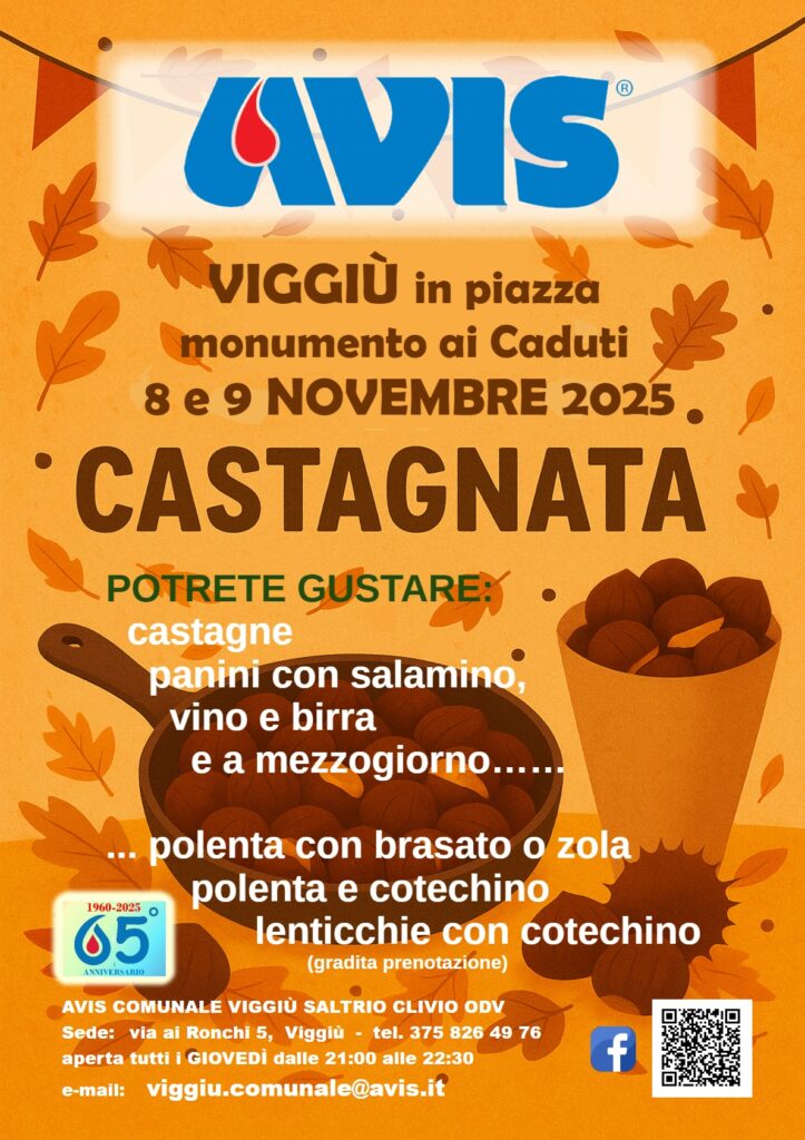 La castagnata, diventata ormai un appuntamento fisso dell’autunno a Viggiù, è anche un’occasione per sostenere l’attività dell’AVIS comunale, che nel 2025 celebra il suo 65° anniversario di impegno nella promozione della donazione di sangue.