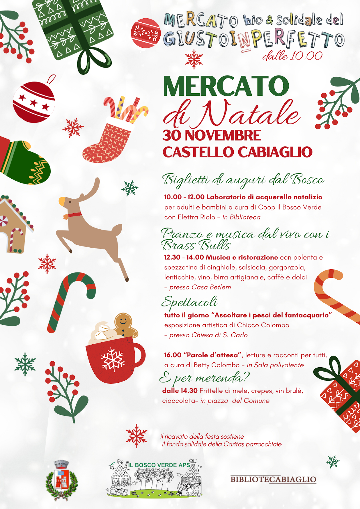 Nel pomeriggio il clima di festa proseguirà con la merenda in piazza del Comune e, alle 16, le letture e i racconti natalizi interpretati da Betty Colombo nella Sala Polivalente, un appuntamento pensato per coinvolgere grandi e piccoli.