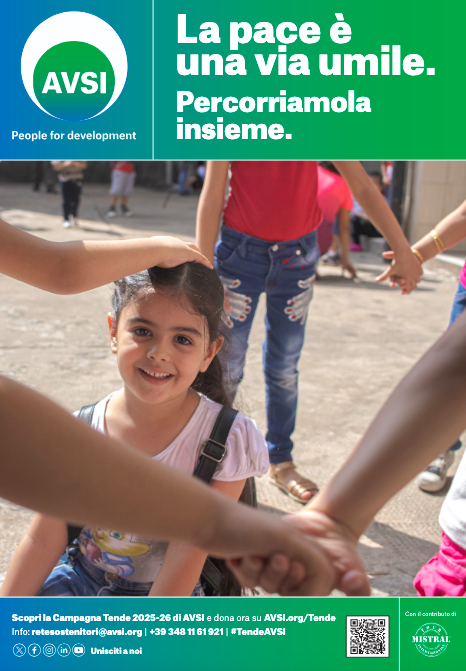 “La pace è una via umile. Percorriamola insieme” è il titolo della campagna tende che la Fondazione Avsi (Associazione volontari per il servizio internazionale) inizia tradizionalmente nel periodo natalizio per sensibilizzare l’opinione pubblica sul tema del bisogno e della pace e per raccogliere fondi a sostegno di progetti di sviluppo in diverse parti del mondo.