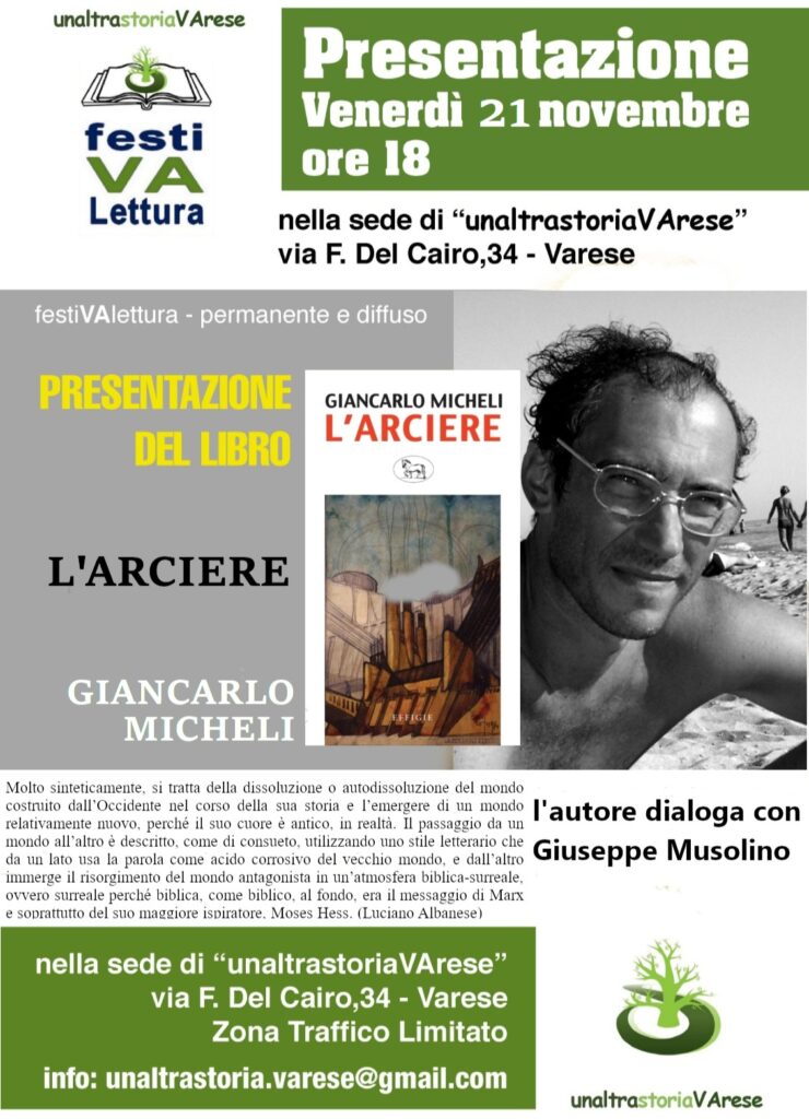Venerdì 21 novembre 2025, alle ore 18, nella sede dell’associazione Un’altra storia Varese, in via Francesco Del Cairo 34, si terrà la presentazione del libro L’arciere (Effigie, 2025) di Giancarlo Micheli, autore che torna con una raccolta di racconti che intrecciano analisi sociale, allegoria e scrittura visionaria.