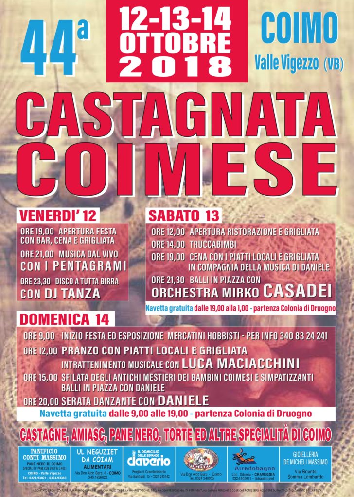 Dal 12 al 14 ottobre, a Coimo – Valle Vigezzo (VB) è in programma la