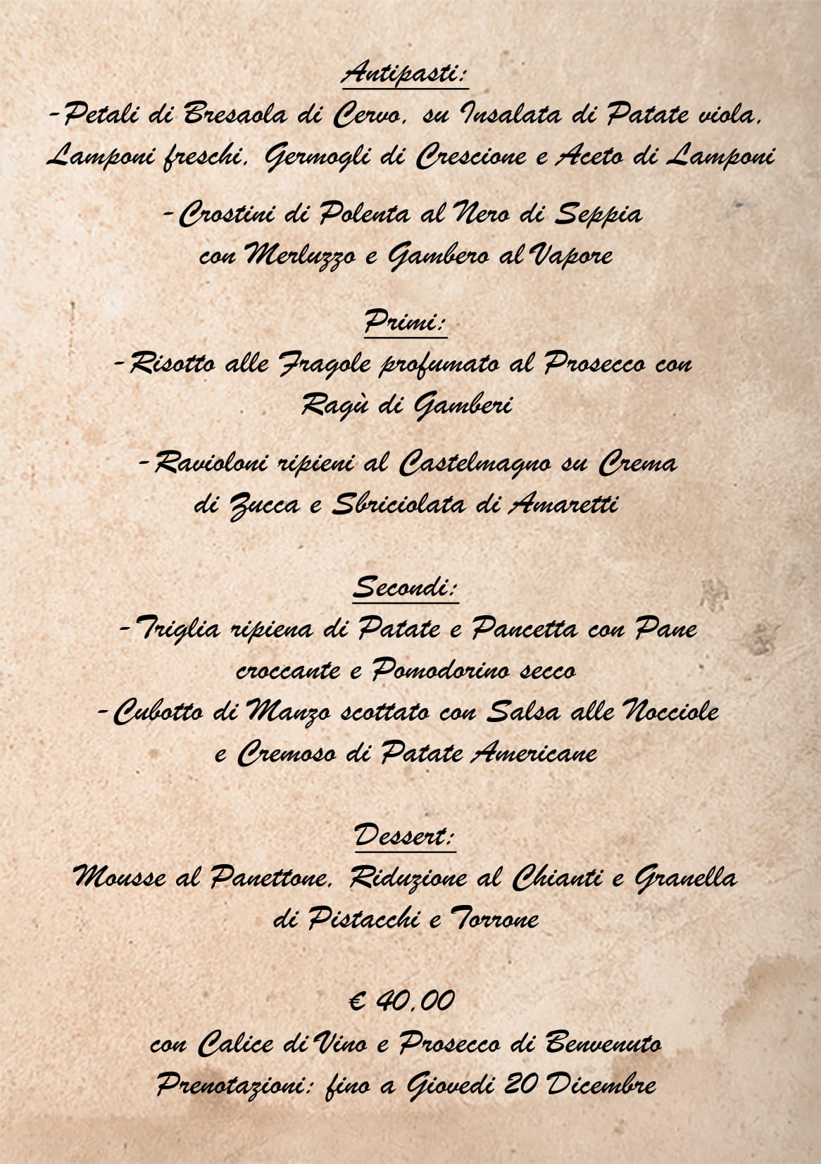La Lanterna sul Lago – Menù di Natale