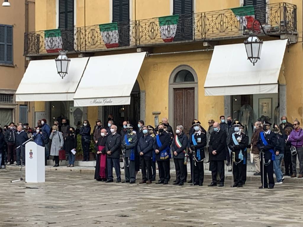 Alzabandiera e deposizione della Corona sono stati i principali momenti della cerimonia, che ha visto però anche le parole del sindaco, del presidente della Provincia e del Prefetto, che ha riferito il messaggio del presidente della Repubblica Sergio Mattarella.